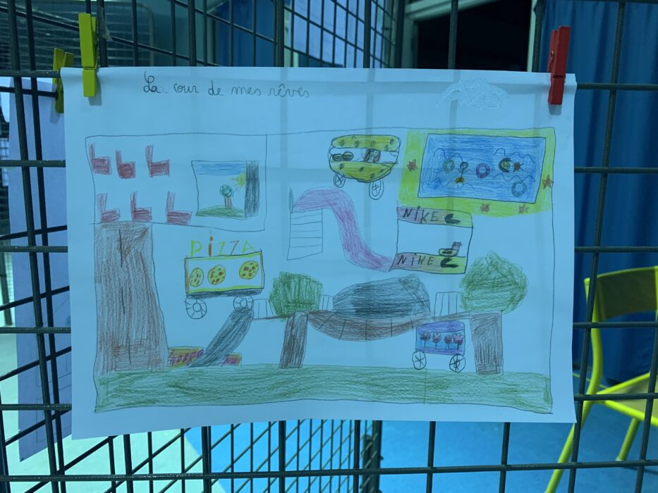 Mardi 25 novembre 2025, la centaine de parents présents pour assister à la restitution de ces ateliers a pu découvrir trois courtes chorégraphies, une exposition de cartes (réalistes)  et dessins (rêvés) de la cour de récréation réalisés par les enfants. Des enceintes dans la salle d’exposition diffusaient des extraits des interviews des enfants sur le sujet de leurs habitudes et façon d’investir la cour de récréation.